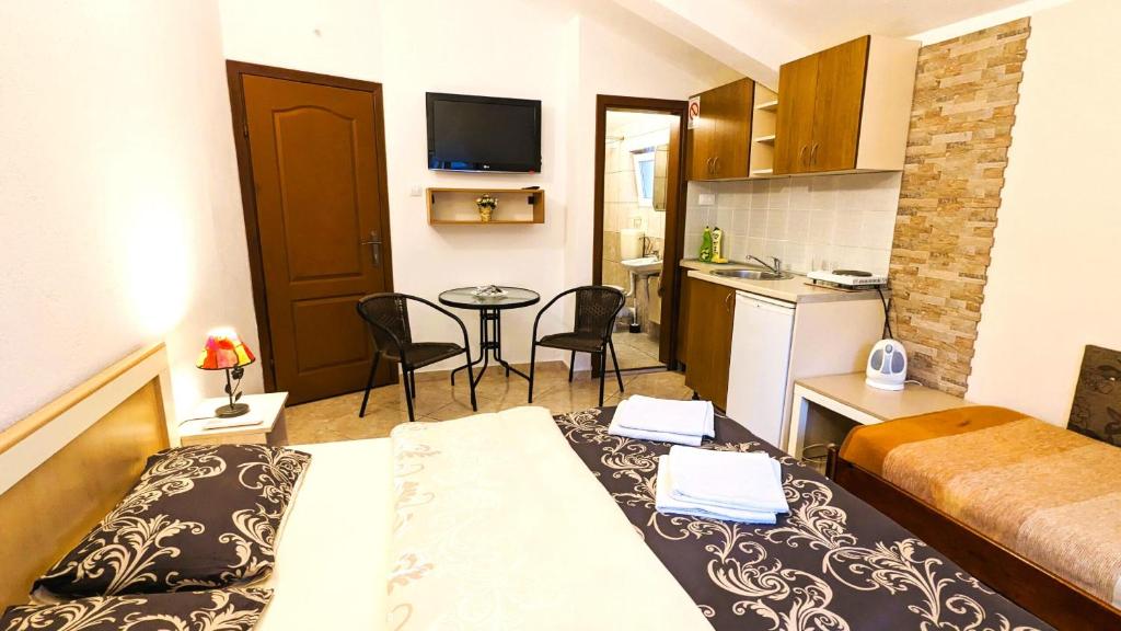 Discover the perfect stay with our thoughtfully designed room options at Apartment Sea & Mountain in Bar. Choose from our charming 24-square-meter Apartment with Sea View, featuring a cozy double bed or sofa bed, ideal for couples or small families seeking scenic vistas. Alternatively, our 24-square-meter Apartment with Shower offers a comfortable space with a single or queen-sized bed, perfect for travelers looking for a restful retreat. Each room type is crafted to provide a welcoming atmosphere for a memorable stay in Montenegro.