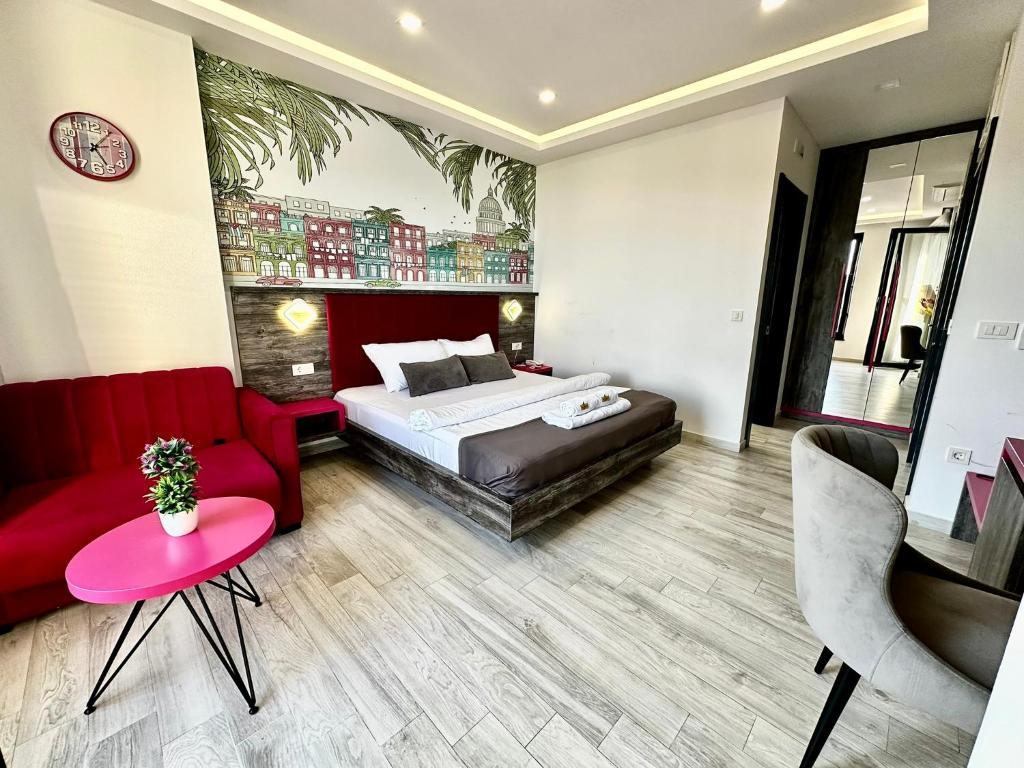 Di Hotel Del Medio, Sutomore, Anda dapat memilih dari berbagai tipe kamar yang dirancang untuk memenuhi kebutuhan dan preferensi Anda. Nikmati kenyamanan dan ruang luas dari Deluxe Sea View yang menawarkan 180 meter persegi, dilengkapi dengan pilihan tempat tidur Queen atau tiga sofa beds yang fleksibel. Untuk pengalaman yang lebih intim, Junior Suite seluas 30 meter persegi menyediakan pilihan tempat tidur Queen atau sofa bed, sempurna untuk pasangan atau perjalanan singkat. Jika Anda menginginkan suasana yang lebih lapang, Suite seluas 35 meter persegi menawarkan kombinasi tempat tidur Queen atau dua sofa beds, ideal untuk keluarga atau kelompok kecil.