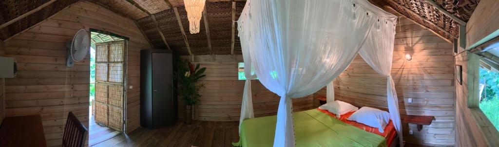 At Pension TUPUNA, immerse yourself in the serene beauty of Huahine Island with our charming Bungalow with Garden View. Spanning 20 square meters, this cozy retreat is designed for couples or solo travelers seeking a peaceful escape. The inviting ambiance of the bungalow, complemented by a comfortable double bed, creates the perfect sanctuary for relaxation after a day of exploring the lush landscapes and pristine beaches of French Polynesia. Wake up to the soothing sounds of nature and enjoy a picturesque view of the vibrant garden that surrounds your private space.